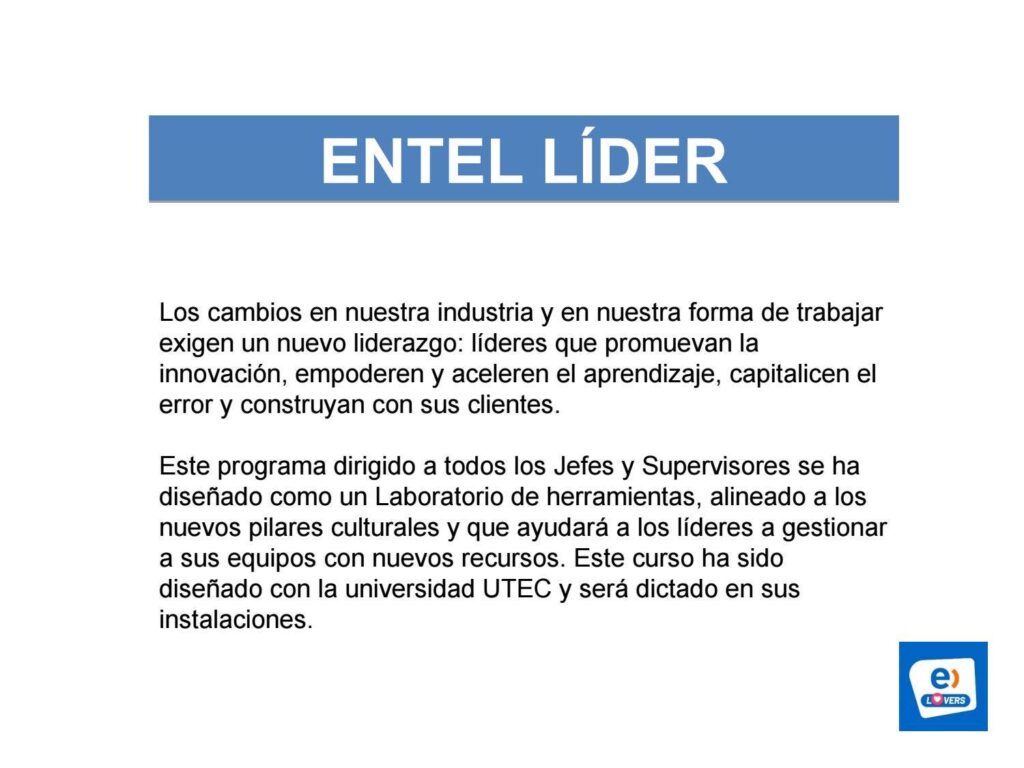 En Entel, creemos en el potencial de los jóvenes talentos. Si eres estudiante o estás dando tus primeros pasos en el mundo laboral, aquí encontrarás un espacio para desarrollar tus habilidades, aprender de los mejores y contribuir a proyectos innovadores en telecomunicaciones. Ofrecemos oportunidades de formación, mentoring personalizado y un ambiente inclusivo donde tu creatividad y esfuerzo marcarán la diferencia. ¡Descubre cómo empezar una carrera con propósito junto a nosotros!